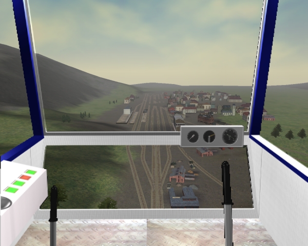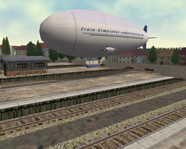 Der Zeppelin folgt wie eine Lok den Schienen, kann also ( noch ) nicht frei gesteuert werden. In der Aussenansicht ist er bei 25m, man sieht ihn nur mit Taste 4, Kamera, in der Kabine befindet man sich 100m über den Gleisen. Und dann ganz Galama mit 80km/h. A little Zeppelin, follows the track like a train, but in 300 feet hight in Cabview, outside at 75 feed. Useles, but funny... |